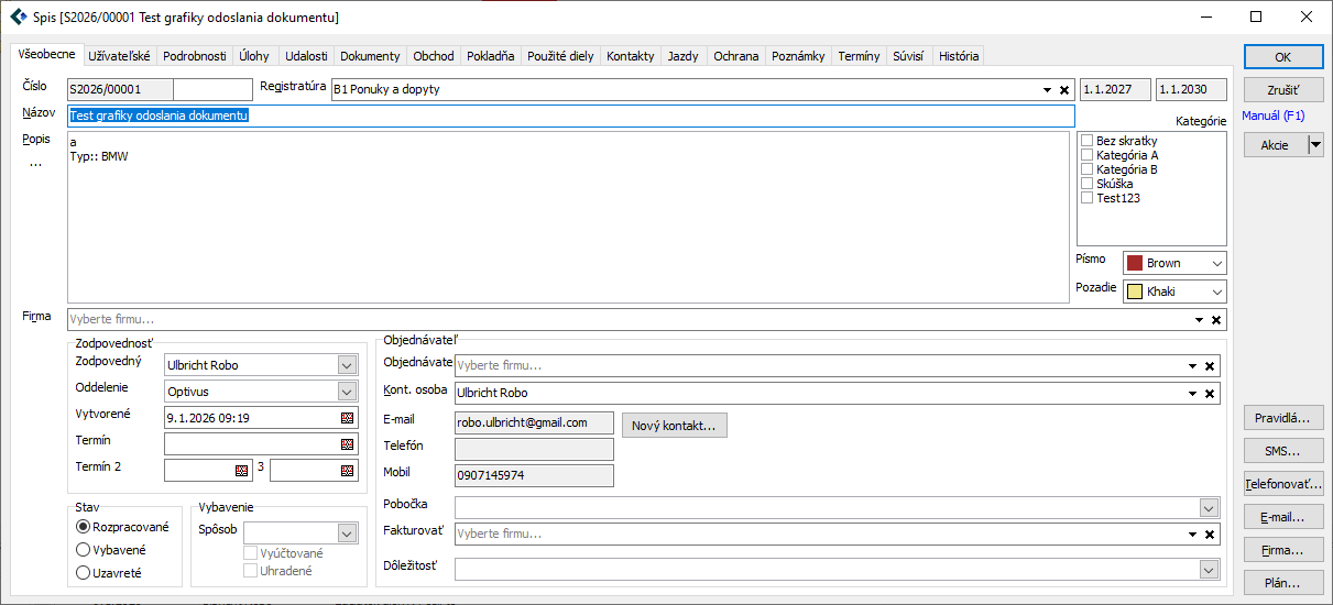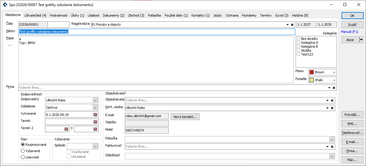 Ak chcete vidieť, či na jednotlivých záložkách máte vložené nejaké údaje, stačí sa pozrieť na jednotlivé uška a hneď vidíte, že sú tam úlohy, dokumenty, obchod a súvislosti.